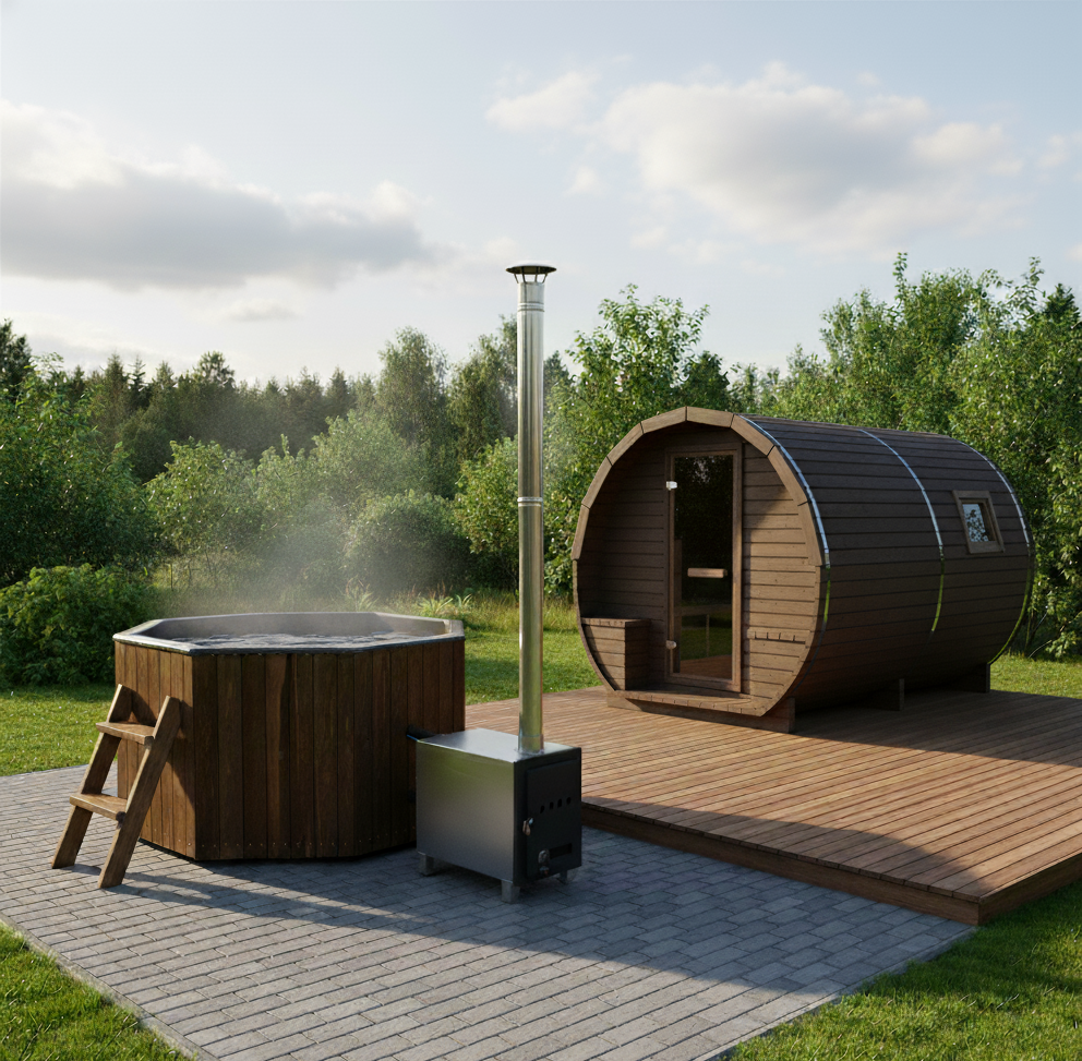 Komplekt sisaldab: klaasplastist sisu, immutatud aluskarkass, töödeldud laudis, vee väljalaskeava koos kraaniga, 30 kW merealumiiniumist ahi.